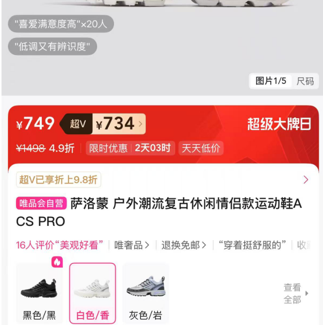 半信半疑地打开App,结果还真有点东西。以前总觉得萨洛蒙这种牌子高冷得很,又是“鞋王”又是溢价的,离月薪3500的打工人实在太遥远。没想到在唯品会上,ACS PRO也打折!