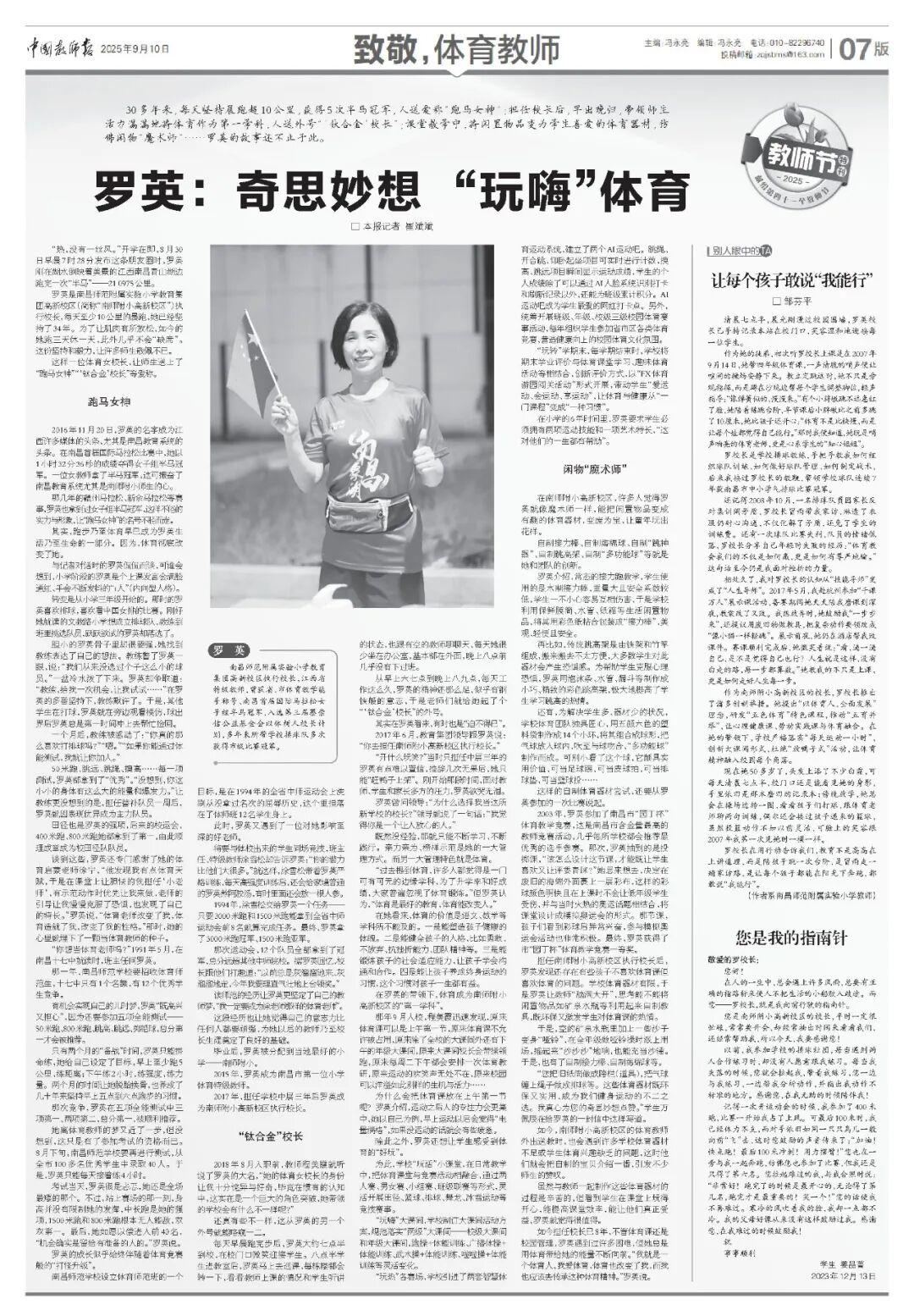 “过去提到体育,许多人都觉得是一门可有可无的边缘学科,为了升学率和好成绩,大家普遍忽视了体育锻炼。”但罗英认为,“体育是最好的教育,体育能改变人。”