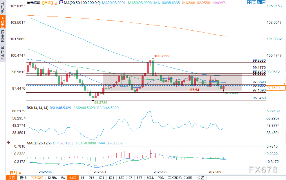 (美元指数日图 来源:易汇通)目前,美元指数在97.859的阻力位下方震荡,周三因生产者物价指数数据引发的反弹未能突破98.100的50日均线(50-daySMA)及98.317的水平阻力位。自8月中旬以来,该区间多次抑制美元的上涨势头,使得短期市场倾向维持“中性偏看空”。美元指数的即时支撑位为9月低点97.253。若能明确跌破该水平,可能进一步下探97.109;若消费者物价指数数据进一步强化“美联储将持续宽松”的预期,甚至可能跌至96.377区间。若消费者物价指数CPI意外高于预期,美元指数突破98.317后,将目光转向98.635和98.834;而更广泛区间的高点99.320将成为下一个阻力区间。目前,美元指数在97.253至98.834区间内震荡整理,50日均线为即时关键枢纽。消费者物价指数CPI将成为决定美元指数走势方向的催化剂,在此之前,交易员应预计,只有当价格明确突破该区间时,才会出现突破行情。